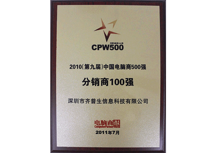 2010年電腦商500強分銷商100強并獲“最佳IaaS方案服務(wù)提供商”