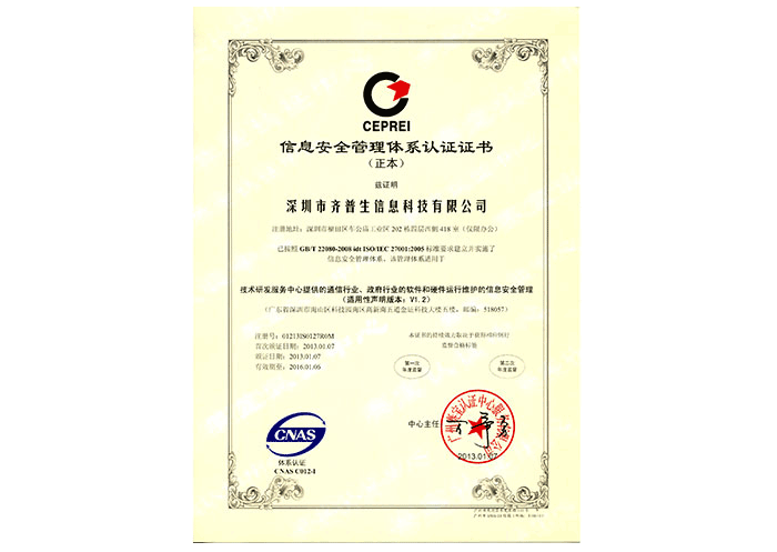 ISO/IEC 27001信息安全管理體系認(rèn)證證書